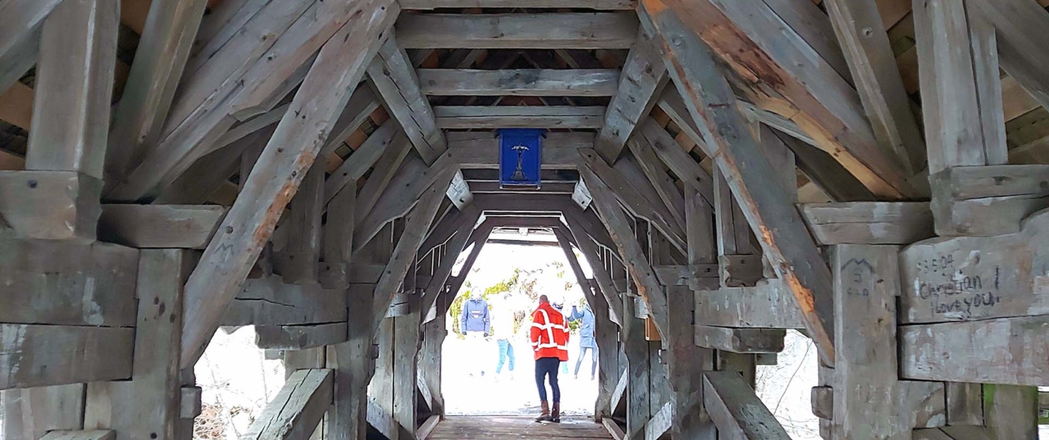 houten voetgangersbrug met overkapping