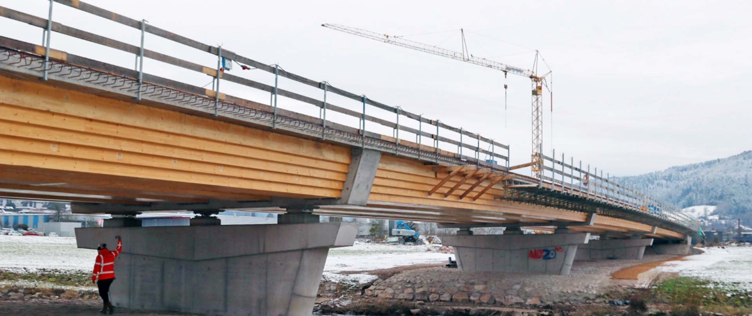 De groep bezocht diverse hybride verkeersbruggen, onder meer de in 2005 gerealiseerde bruggen in de provinciale weg in Bulle (CH) en een ecoduct in Bouhans-les-Lure (F) uit 2017. In het Duitse Offenburg voerde de reis langs een in aanbouw zijnde 136 meter lange verkeersbrug met vier overspanningen van 34 meter. Deze brug bestaat uit gelamineerde houten liggers van 1,4 meter hoog en een betonnen druklaag. De brug is straks geschikt voor alle verkeersklassen, inclusief zware vrachtwagens. Een mooi bewijs dat hout ook toepasbaar is in dergelijke grote bruggen.