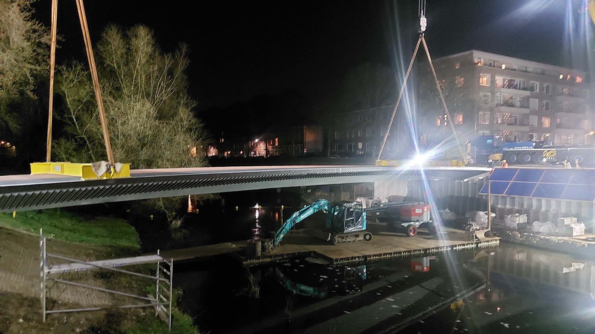 /in nieuws INFRAAfgelopen nacht is in Den Bosch de bijna veertig meter lange fiets- en voetgangersbrug Bastion Deuteren geplaatst. Ondanks het tijdstip, trok de operatie veel bekijks. Onze ontwerper Job Handelé was erbij. De opdracht voor dit project verkregen we slechts een jaar geleden via een tender in samenwerking met aannemingsbedrijf Damsteegt.