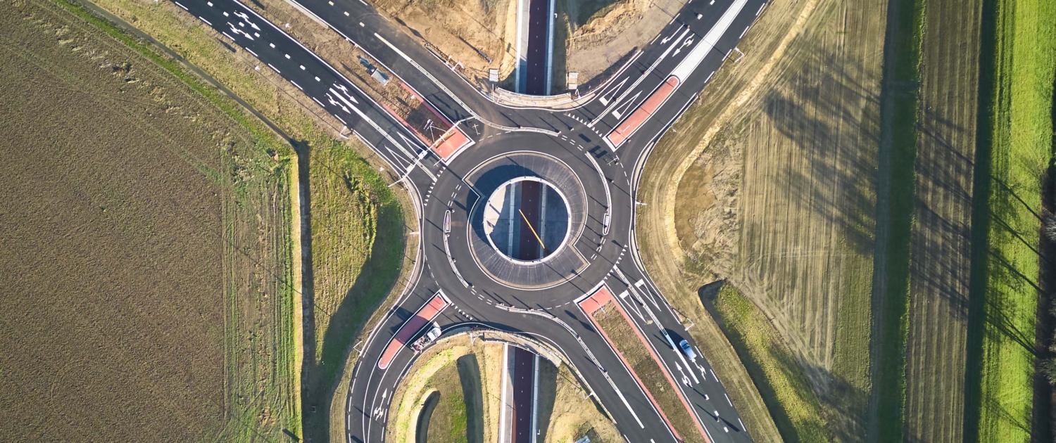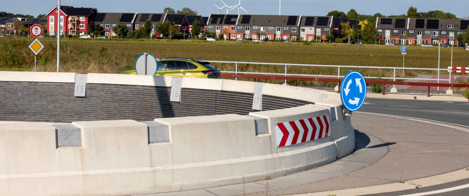 Om bij de rotonde het maaiveld zichtbaar te verbinden met de onderdoorgang en het verdiept aangelegde fiets- en voetgangerspad, ontwierpen we een markante eye-catcher: de zonnewijzer. De betonnen randen van vide in het midden van de rotonde vormen een perfecte cirkel. Dit bracht ons op het idee van de zonnewijzer. Een zorgvuldig geplaatste cortenstalen naald van .. meter hoog geeft met zijn schaduw de tijd aan. Het resultaat is een unieke, iconische rotonde.