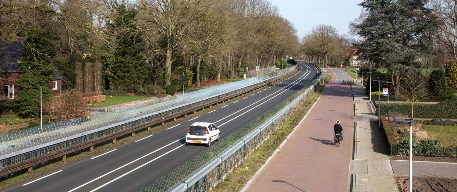 Voor deze twee varianten maakten we vervolgens het referentieontwerp. Daarbij letten we er op dat het geheel begroeide scherm en het deels glazen scherm goed te combineren zijn. Zo kon in de uitvoering rekening gehouden worden met de wensen van individuele aanwonenden. Dit is, voor zover we weten, ook daadwerkelijk gebeurd. In opdracht van Strukton Wegen & Beton en de provincie verzorgde Molhoek Infratechniek de uitwerking en realisatie. Het eindresultaat is zoals bedoeld: rustig en eenduidig, en toch ook met variatie.