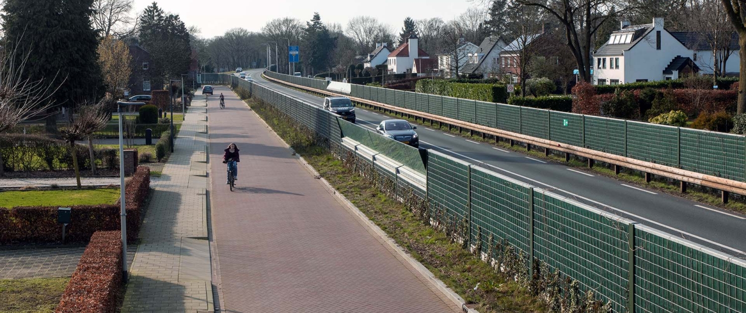 In opdracht van de Provincie Noord-Brabant onderzochten we de mogelijkheden voor een nieuw te plaatsen geluidsscherm langs de N270 (Langstraat). Aanleiding hiervoor was de herinrichting van de N270 tussen Deurne en de grens met Limburg. De hoogte van het beoogde scherm lag vast op 2 meter. Tijdens twee bewonersavonden spraken we samen met de gemeente Deurne met de aanwonenden van de Langstraat. Zo kwamen we tot een voorstel met twee varianten: een volledig begroeid scherm en een scherm met een begroeide onderzijde en een bovenzijde van glas. Voor beide was animo.