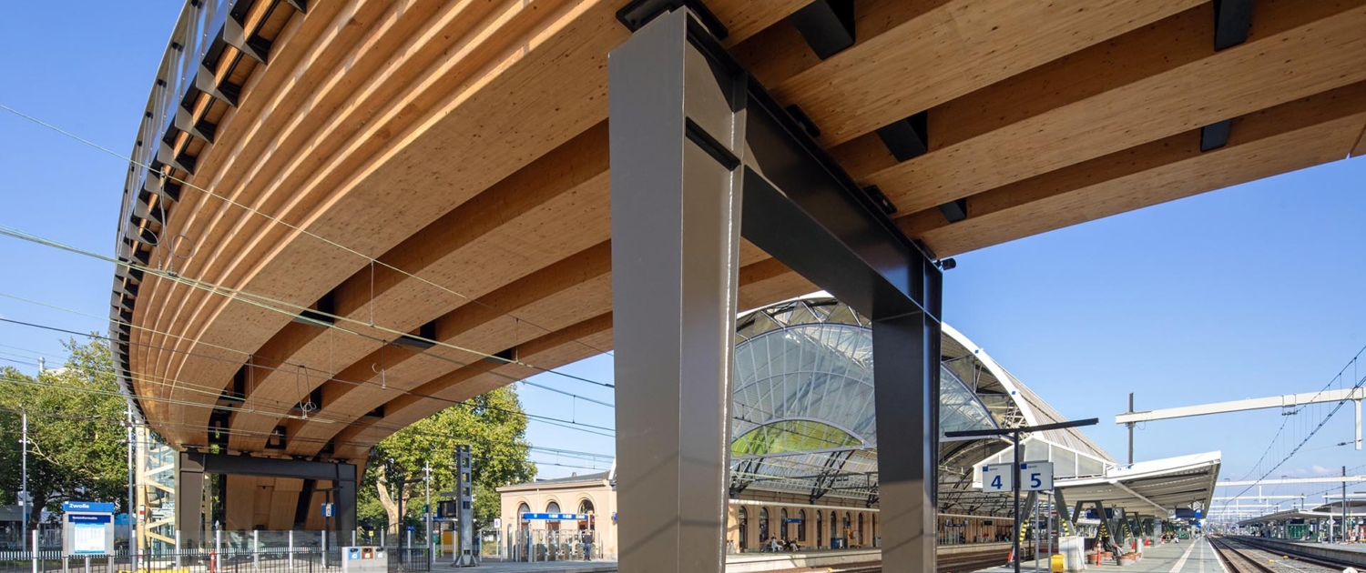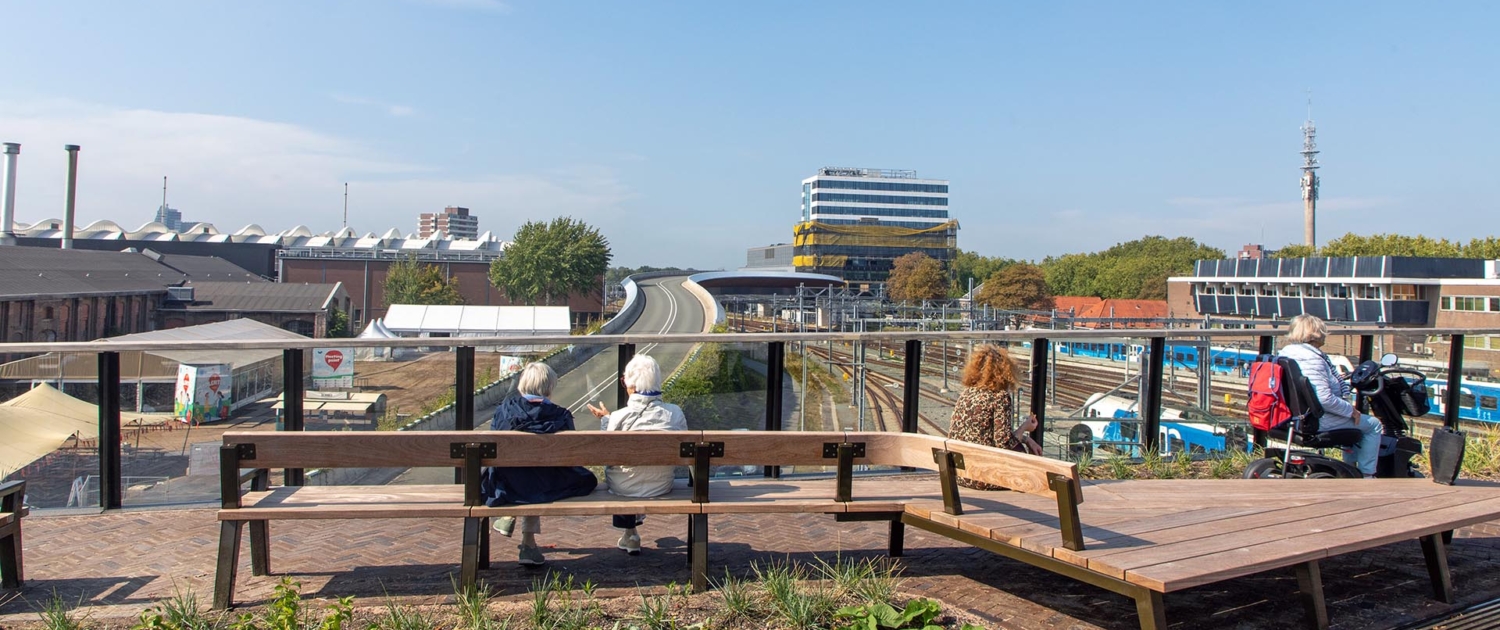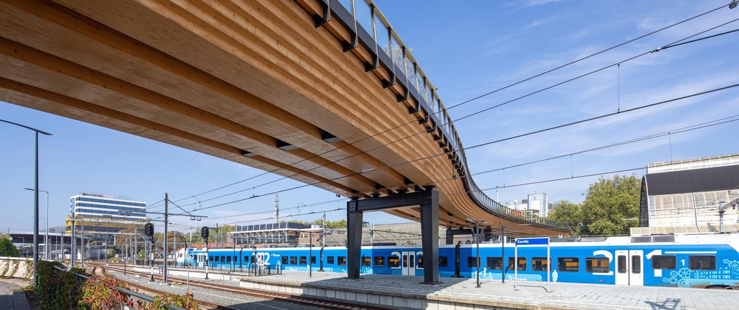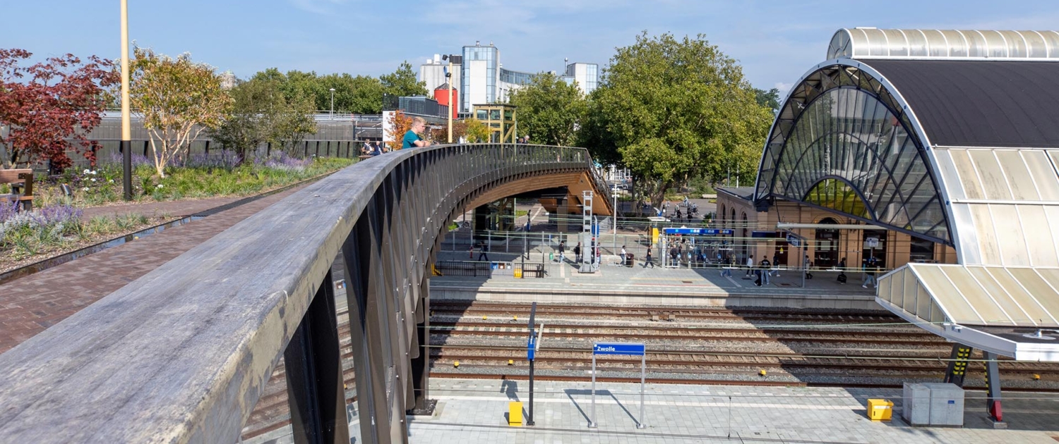 Een voetgangersbrug (ofwel: passerelle) ontworpen als park van 130 bij 10 meter, opgetild boven het spoor, met een unieke volledig houten brugdekconstructie. Dat is de duurzame en groene passerelle bij station Zwolle in een notendop. Op 5 en 6 september 2025 vond de feestelijke opening van de grootste houten brug over het spoor in Nederland plaats.