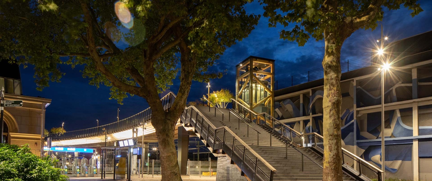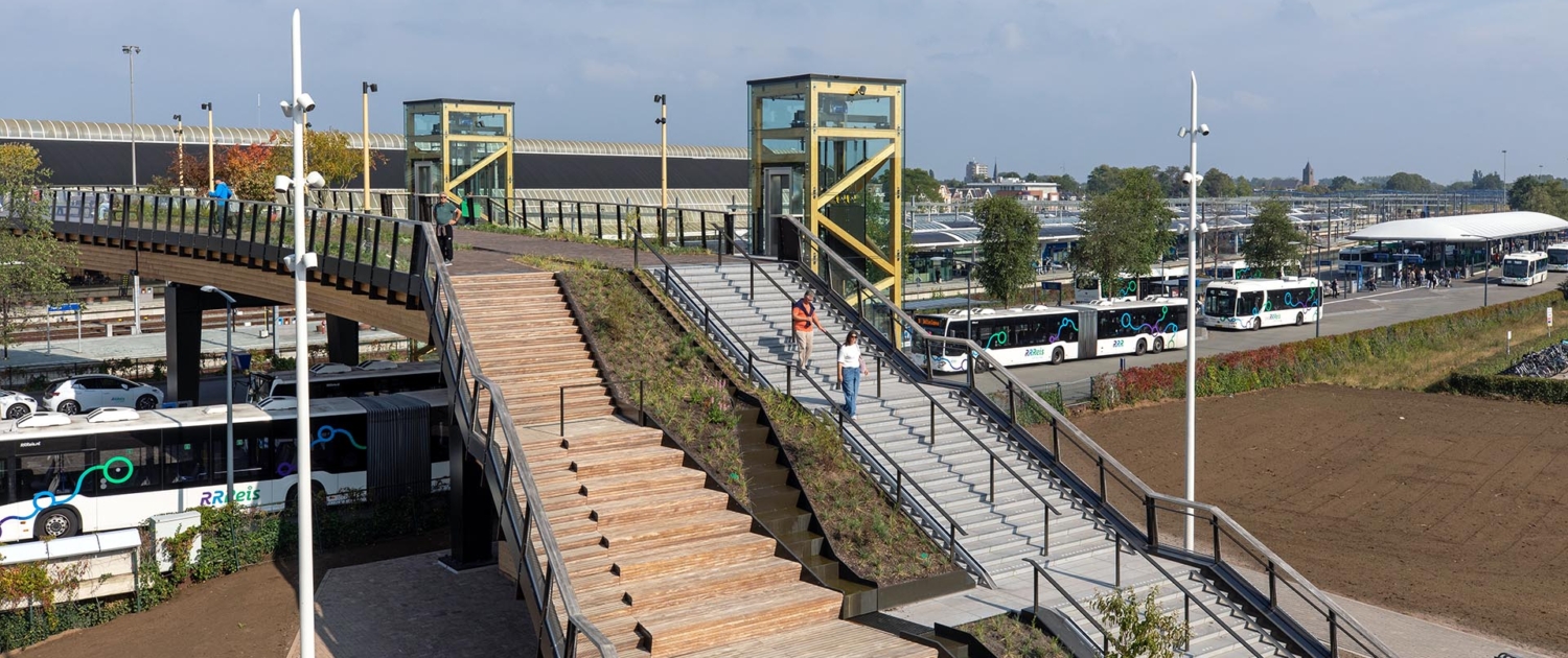Niet alleen loopt de openbare ruimte door op de brug, ook de trappartijen aan weerszijden zijn expliciet ontworpen om meerwaarde voor de gebruiker en de stad te creëren. De trappen aan zuidkant vormen bijvoorbeeld een aantrekkelijk vormgegeven tribune met volop beplanting en kabbelend water, uitkijkend op een nieuwe groenzone. Ter plaatse van het busstation biedt de passerelle zitgelegenheid om op de bus te wachten en centraal op de brug staat een waterkunstwerk, dat via een zichtbare watergeul op de brug in verbinding staat met het watersysteem van het stationsplein.