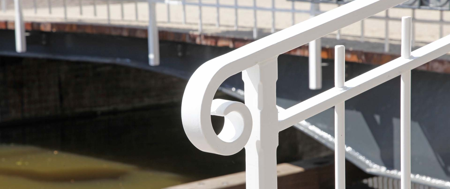 Bij de Hofbrug gaven we de trappen rvs stootplaten (de oorspronkelijke waren van regulier staal en daardoor compleet doorgeroest) en zorgden we voor een nettere bevestiging van de noodzakelijke mantelbuis en gasleiding aan de buitenzijde van de brug.